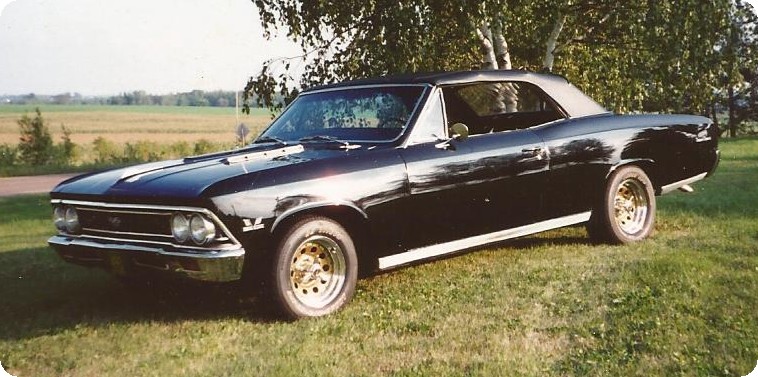 In the fall of 1974 as a junior in high school I sold my 64 Chev Belair and purchased this 66 Chevelle ragtop for the then premium price of $700. Shortly after buying it the clutch went south and forced me to spend a little more money on it.